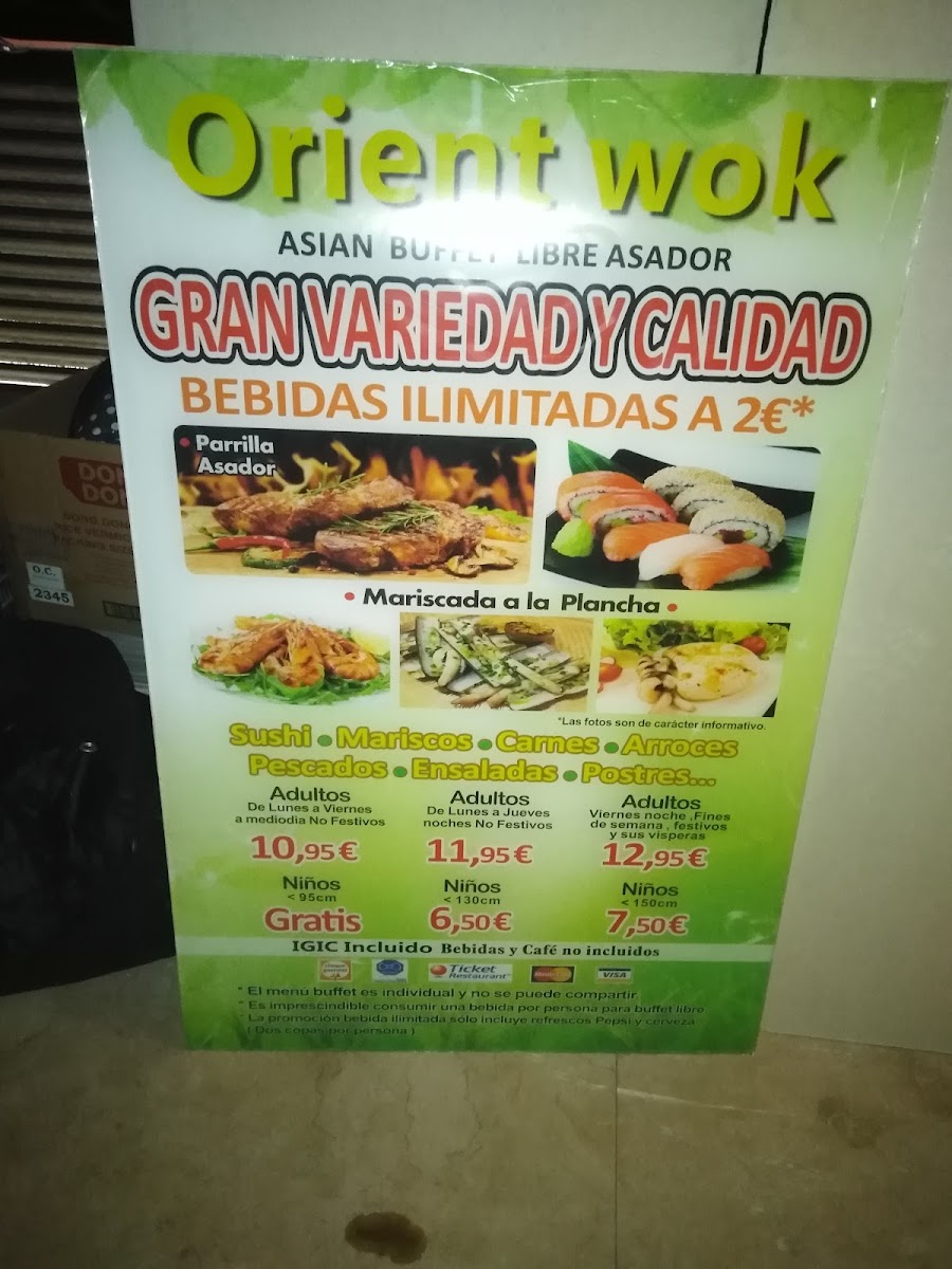 Welcome to Wok Chopsticks, a culinary gem nestled in the heart of Santa Cruz de Tenerife. This vibrant buffet restaurant offers a delightful fusion of Asian cuisine, catering to all tastes with a diverse menu that includes succulent sushi, tender prawns, and juicy chicken. Customers rave about the mouthwatering options, from spicy and BBQ chicken to delectable pork, paired perfectly with thick and thin noodles or fragrant rice.